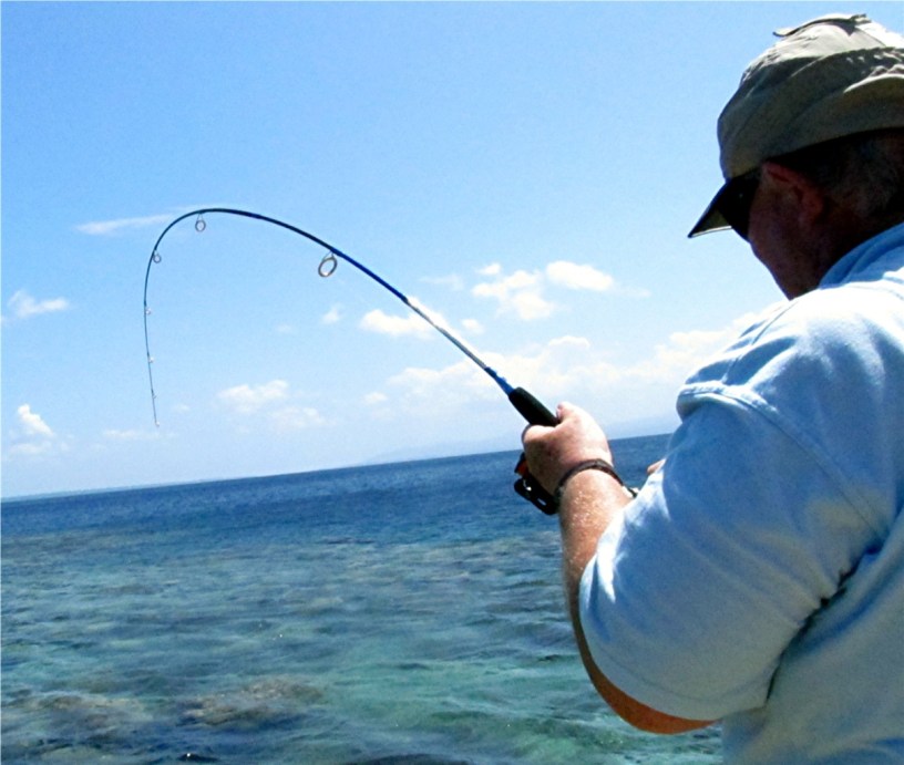 Clear water over very shallow bommies means you need both some muscle to skull drag a fish and some finesse in working them around coral heads. But, every so often, you do get to land the fish….